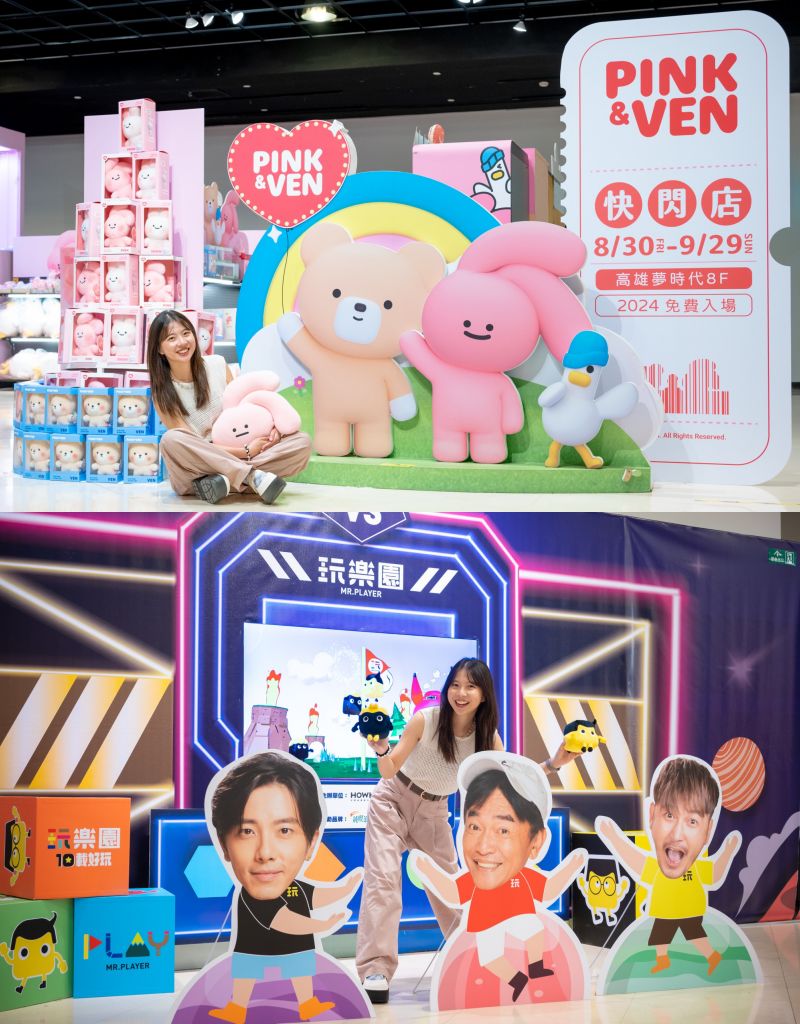 韓國高人氣粉紅兔PINK與香草熊VEN首次登陸高雄夢時代打造療癒系粉嫩世界,推出逾百款韓國進口可愛周邊小物,還帶來萌趣可愛的3米高粉紅兔香草熊巨型扭蛋機、韓式拍貼機及姓名貼機,大大滿足粉絲們的期待。