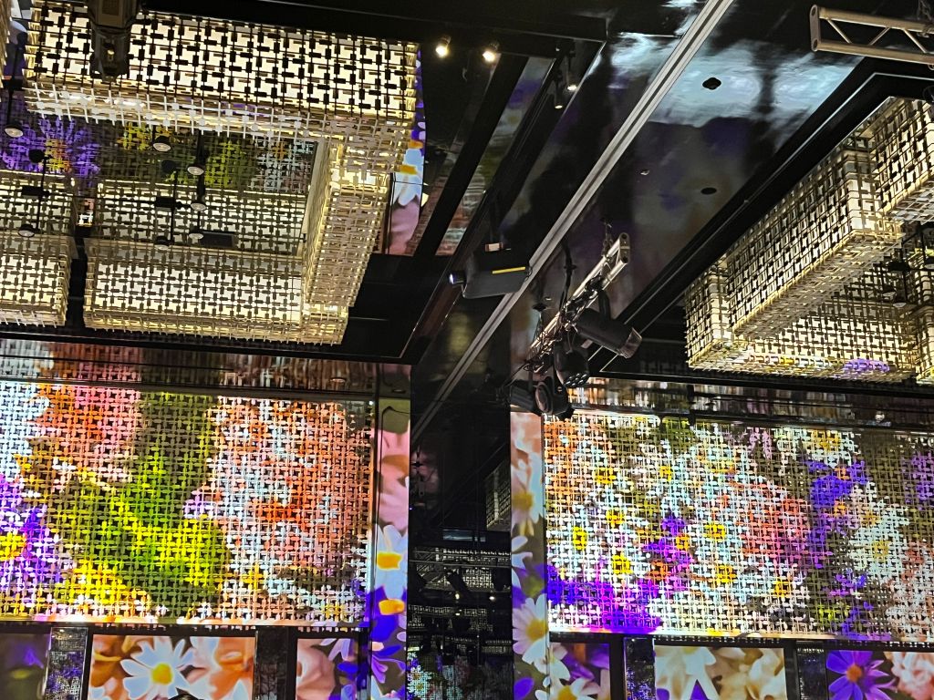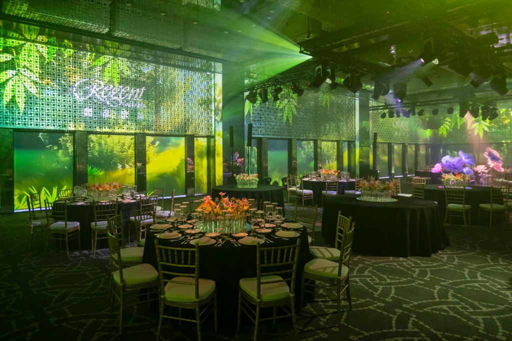 晶華酒店也將5G應用在數位美學方面,透過環景投影技術將宴會廳挑高二層樓窗景延伸至室內,創造沉浸式視覺效果。引入光雕技術使宴會活動更多元化,透過5G專頻專網能夠即時傳輸高解析度影像數據,創造驚豔的舞台背景與獨特婚宴體驗,減少佈置物製作成本,不使用一次性背板更環保。