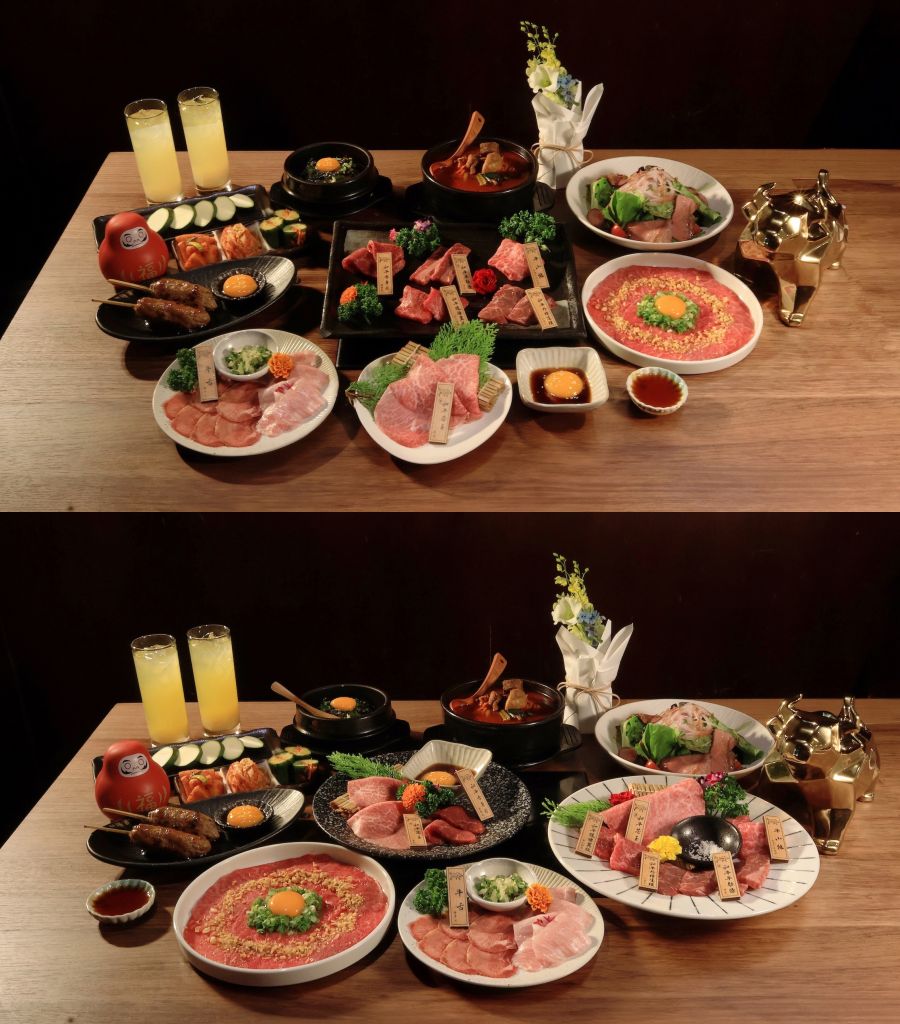 月見套餐規劃月見肉丸、月見拌飯及日本賞月必備甜點月見団子3款應景日本傳統美食,嚴選日本、美國與紐西蘭3國8種口感肉品,提供牛小排、薄片牛舌、牛肋條、橫隔膜、後腰翼板、涮涮燒、赤身肉等品項,還有松阪豬肉、5款蔬食小點飲品共16種品項。