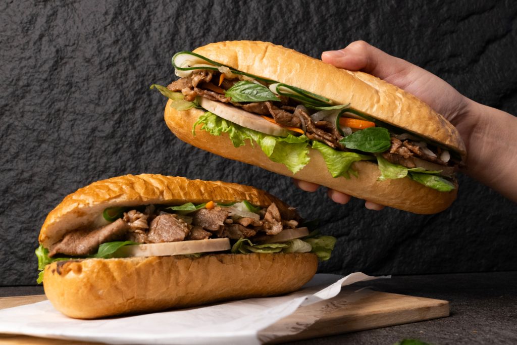 新鮮脆口美生菜、爽脆飽滿小黃瓜、酸甜紅白蘿蔔絲與迷人香氣九層塔,多樣又澎湃纖維質就是越南什錦麵包圈粉小秘訣。主廚依黃金比例調出濃郁滑順特製抹醬,抹上外脆內酥法國麵包,完美提升口感豐富度。巨型法國麵包加入爆量肉肉及澎湃生菜,每份都超過半斤重,歡迎來挑戰重磅級飽足感。