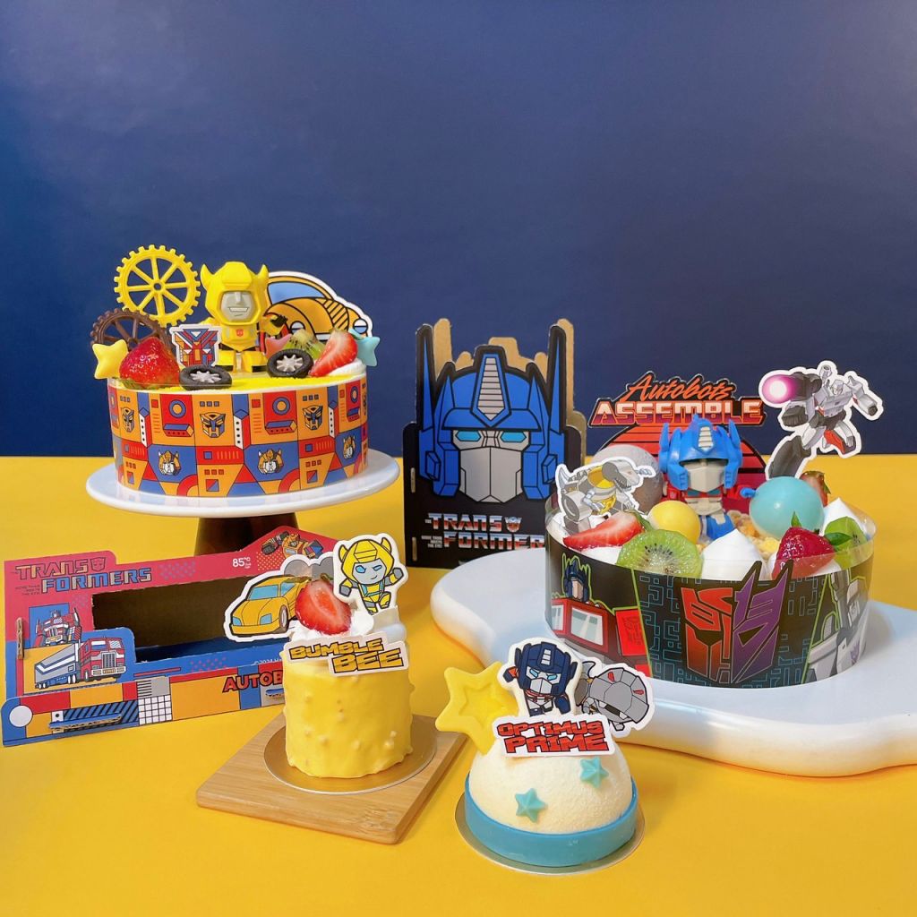 85℃首次與變形金剛獨家聯名,推出4款柯博文與大黃蜂造型蛋糕,2款整模蛋糕有柯博文與大黃蜂公仔可以收藏當鑰匙圈,還有各別專屬造形蛋糕盒,裡面內墊高板可以DIY做成變形金剛筆筒或手機架,與另外2款專屬Q版變形金剛小蛋糕盒,全台共限量推出。