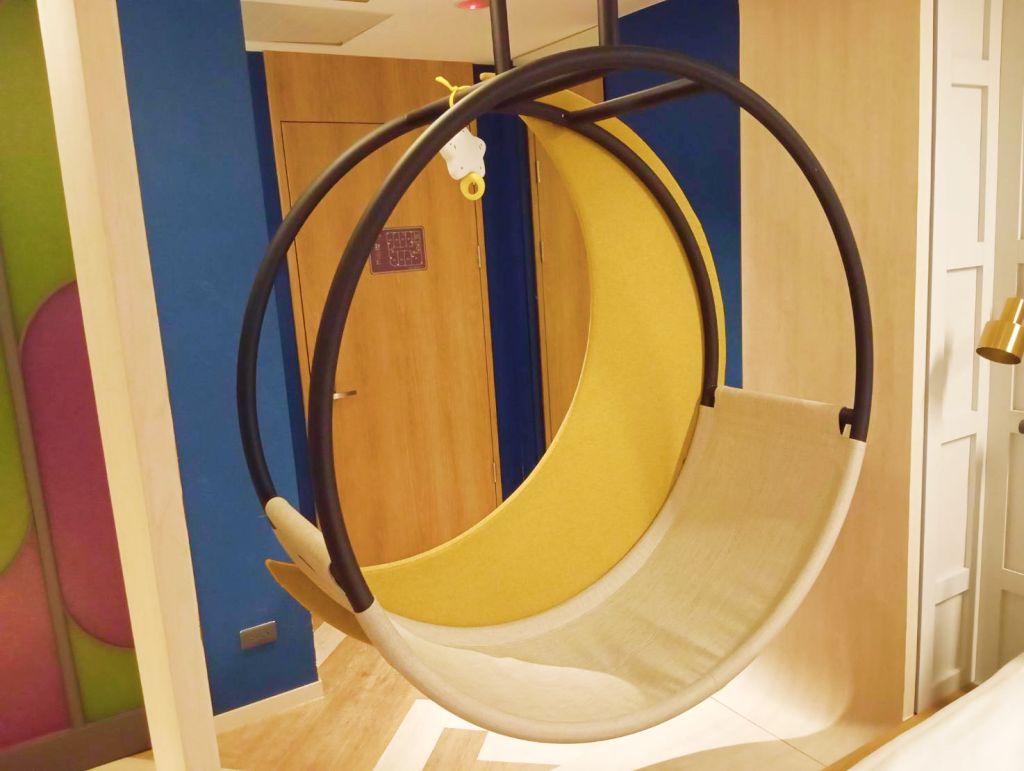台中悅樂以分享歡樂、輕奢潮旅概念出發,設計風格簡潔現代,復古裝潢又帶著潮流感,色調繽紛又亮麗,結合在地美食與文化,充滿設計感與小巧思,帶給入住旅客像是「到同學家,但同學的爸媽不在家」那種輕鬆自在的感覺。