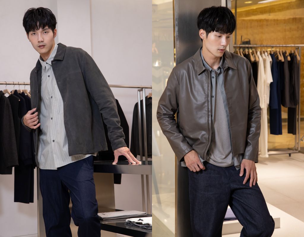 皮質系列商品精選義大利小牛皮、公牛皮及麂皮,打造經典皮衣款式。皮衣背心內裡採用全鋪棉設計,提升保暖效果。鈕釦細節經過特殊磨色處理,與皮革色調相得益彰。