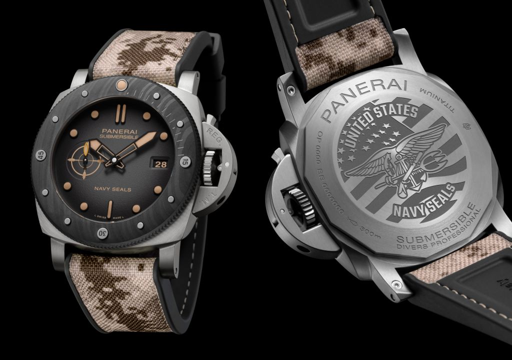 Submersible Navy SEALs系列錶款隨附橡膠與迷彩圖騰織物雙材質拼接,及黑色波紋橡膠2組錶帶,展現內斂運動風格。PAM01518、PAM01669 與 PAM01521三款創作採用可替換式錶帶系統,能依據不同場合快速輕鬆地轉換個人風格。