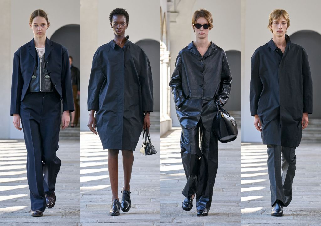 白色襯衫等單品搭襯黑色裙子、長褲與洋裝,藉此二元對比彰顯特質。飛行員夾克鮮紅色彩點綴形成鮮明對比,時而蛻變為蝴蝶,時而又幻化為流蘇刺繡,提供金屬感閃耀巧思。針織衣料搭配輕盈晚裝,運動衫簡約或妝點著閃耀綴飾,都成為平日穿搭主角。