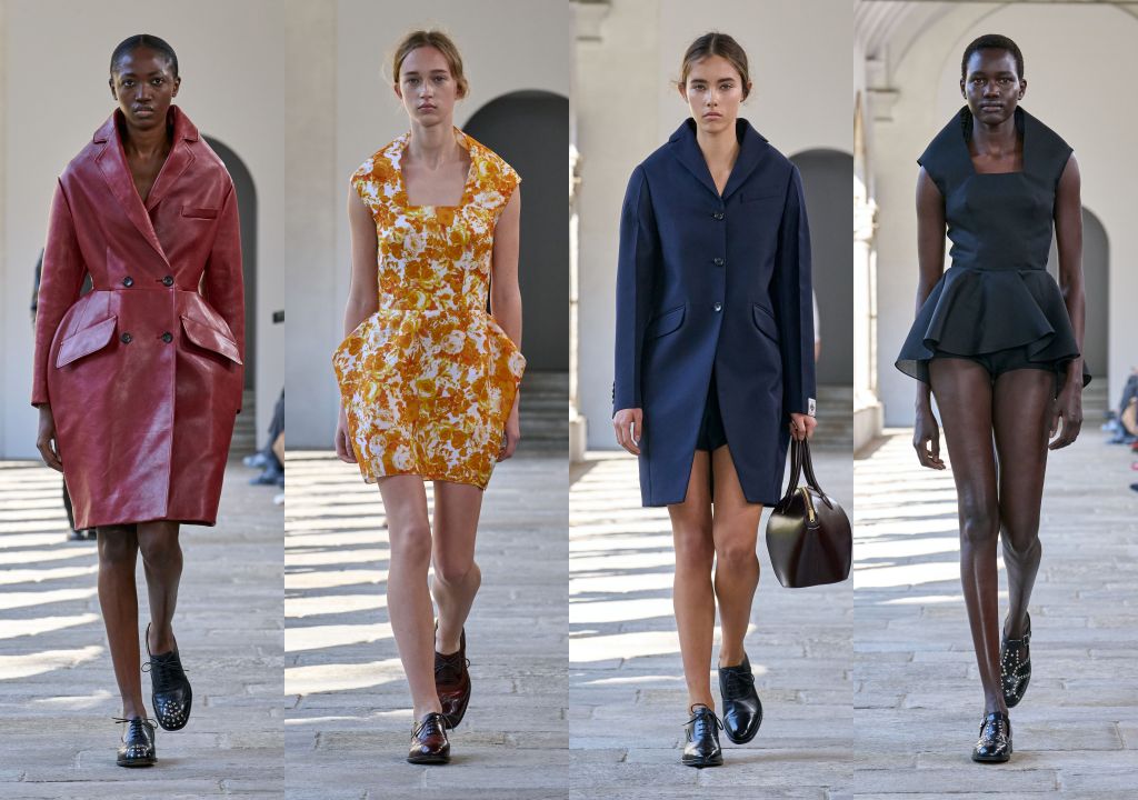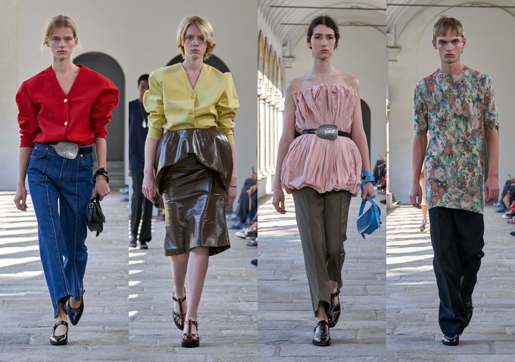 達達主義藝術家兼詩人Hugo Ball(雨果.鮑爾),曾身著繭形凹面鋼製長袍,為低領廓形添以歌劇風格。本季以他荒誕叛逆姿態為靈感,隨處點綴花瓣般荷葉褶邊細腰窄裙、圓潤衣袖及褶皺垂墜塔夫綢或真絲。各款BALLY春夏新作以達達主義探究著裝準則,運用層次鋪陳、巧妙地重塑經典原型。