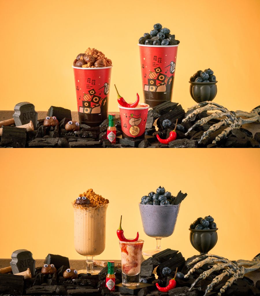 療癒系手搖飲發發與美國百年知名辣醬TABASCO®聯名,首創推出"塔巴斯科幽幽格",將紅椒汁與招牌優格完美融合,酸辣刺激全新風味,絕對是辣控夢幻逸品!以萬聖節經典配色為靈感,推出"藍莓竹炭幽幽格"、"焦糖脆脆栗子幽幽格",兼具搞怪與美味。