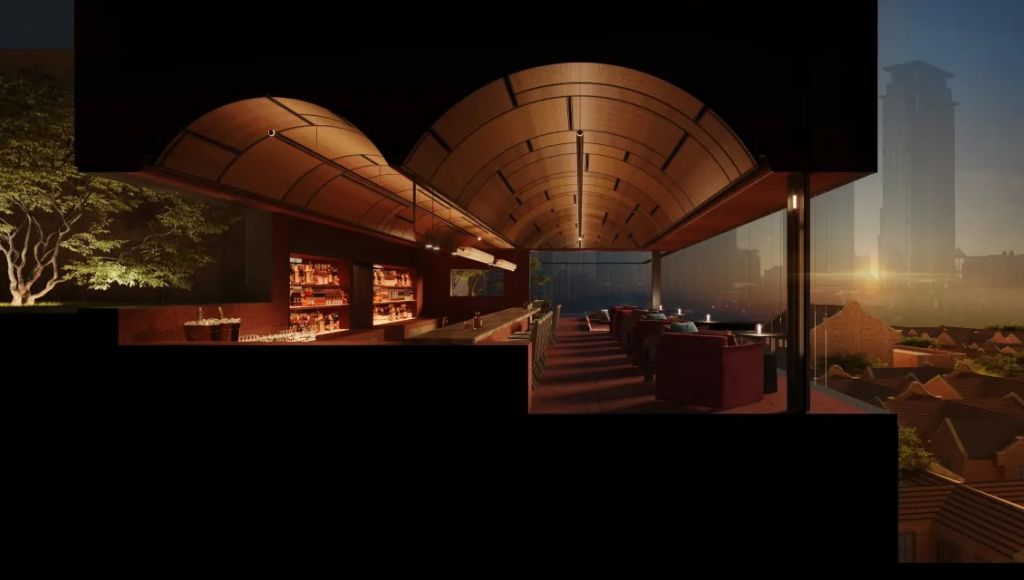 酒吧Secret Roof特調雞尾酒選用有機花園新鮮時令蔬果,呈獻清新自然風味,搭配心曠神怡的日落景致,營造輕鬆愉悅氛圍。露台兩側巧妙設計置身於自然懷抱,透過主酒吧巨大落地窗能將張園景致盡收眼底。雙拱形天花板更為這方天地增添幾分復古與現代交織韻味。