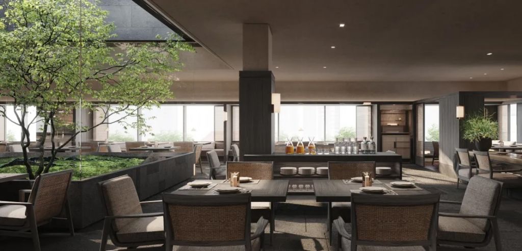 映庭日式餐廳正中間被楓樹環繞。早餐期間可以單點中西式與日式套餐,並提供新鮮蔬果汁及單一產地咖啡豆沖泡咖啡。午晚餐期間可享用精心烹製的日式爐端燒,搭配精選清酒、燒酒及有機葡萄酒。