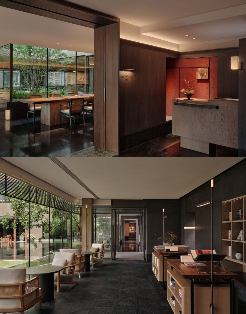 進入4樓酒店大堂瞬間被一種安寧氛圍擁抱,體驗阿麗拉上海特有歡迎儀式,意味揮別喧囂都市,開啟平衡、探索、寧靜之旅。進入以上海古典園林為靈感江南綠洲,露天庭院景觀池中央擺放一株以不鏽鋼與景德鎮陶瓷製成”樹.聚”藝術品,展現堅韌與溫潤和諧之美。