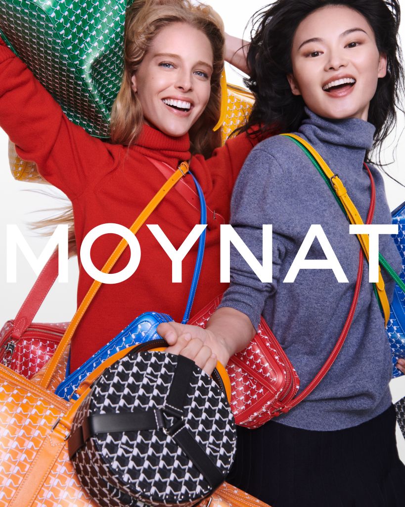 M系列形象視覺大片由著名時尚攝影師Oliver Hadlee Pearch拍攝,由中國超模賀聰與阿諾史瓦辛格兒媳婦Abby Champion詮釋COLOR CANVAS,演繹MOYNAT帆布系列的精髓,將朝氣、活力與色彩融合,透露出愉悅,希望,自由精神。