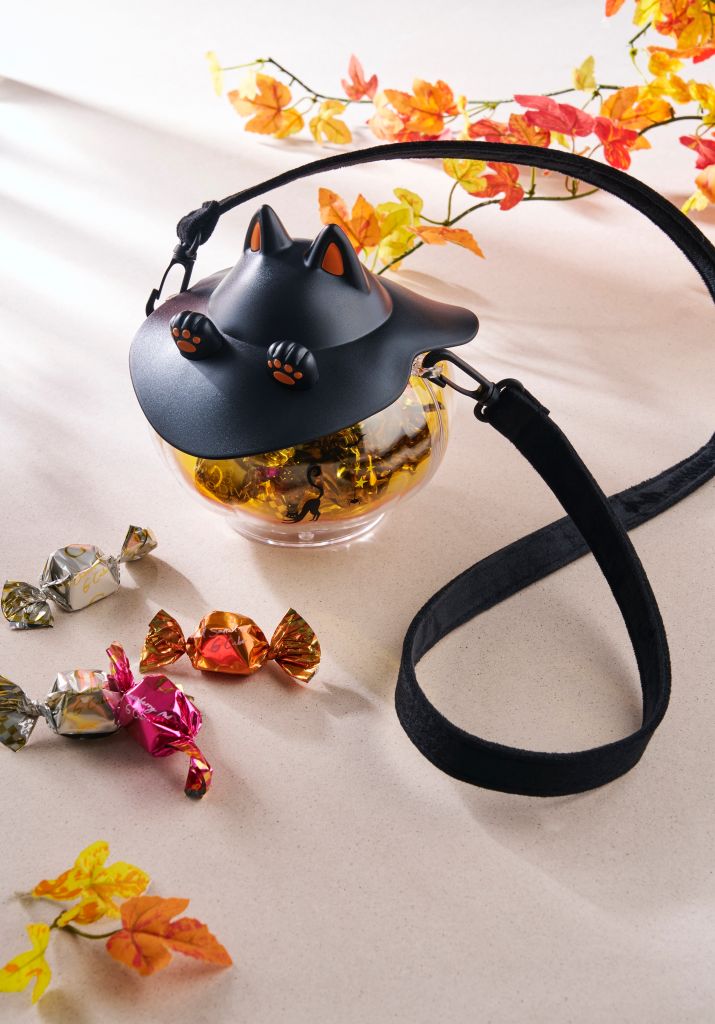 萬聖超萌小貓造型南瓜包禮盒以經典南瓜燈為靈感,精心打造巧克力罐可以裝填GODIVA濃醇香滑美妙滋味,更是聚會吸引歡笑喜悅的聚光燈,俏皮可愛的黑色小貓造型上蓋搭配可隨身攜帶禮盒黑色背帶,讓你在濃濃萬聖派對氣息中展現專屬童趣與活力!