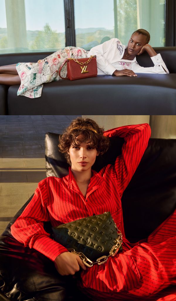 其他經典手袋變得更為生動,NOÉ束口水桶包或經典TWIST FAUVE紅棕色EPI皮革款式。多款主要造型均採用MAHINA MONOGRAM,以灰色BRUME為底色,搭配藍白漸層效果,令人想起變化不斷的天空。
