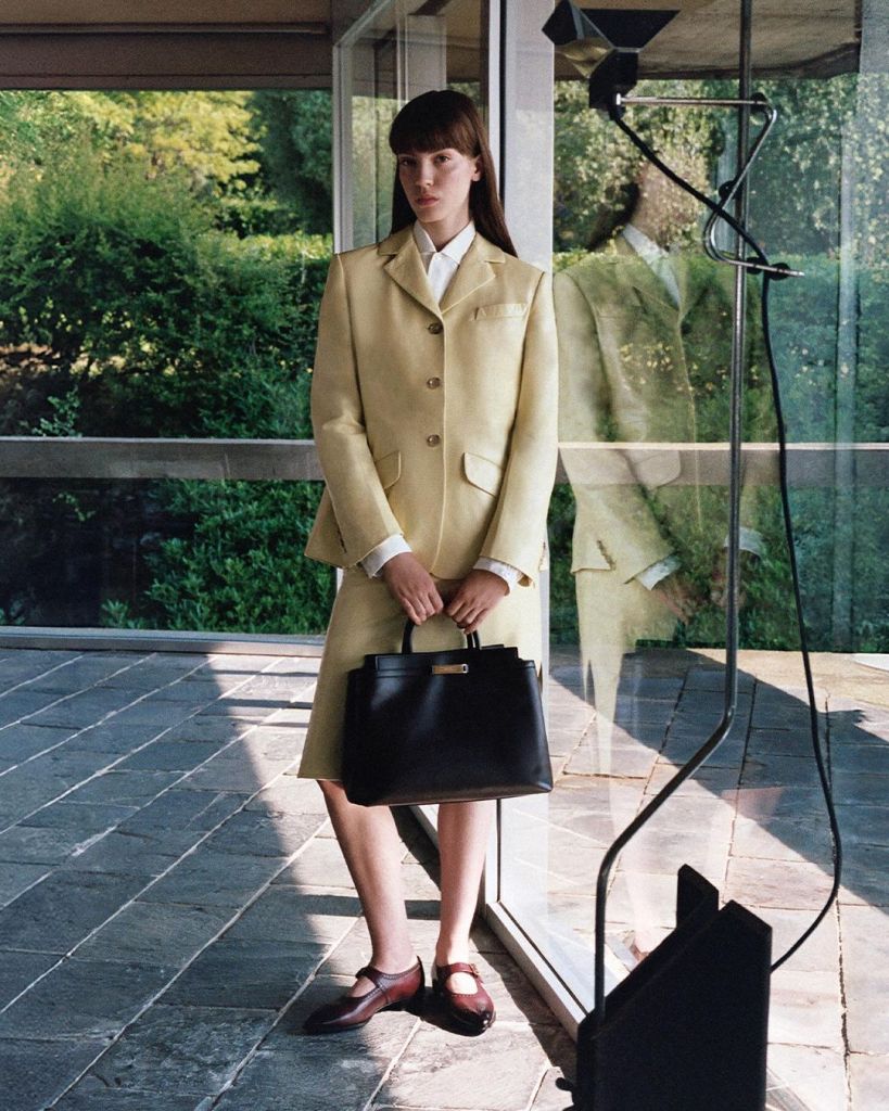 涼爽秋日必備長袖POLO衫、羊毛短裙、BELLE提把包、DECO’托特包,鮮嫩酪梨綠被運用在優雅OLLAM提把包,各自擁有濃淡深淺的綠,而OLLAM意為大師、專家,呼應BALLY追求卓越工藝的初心。