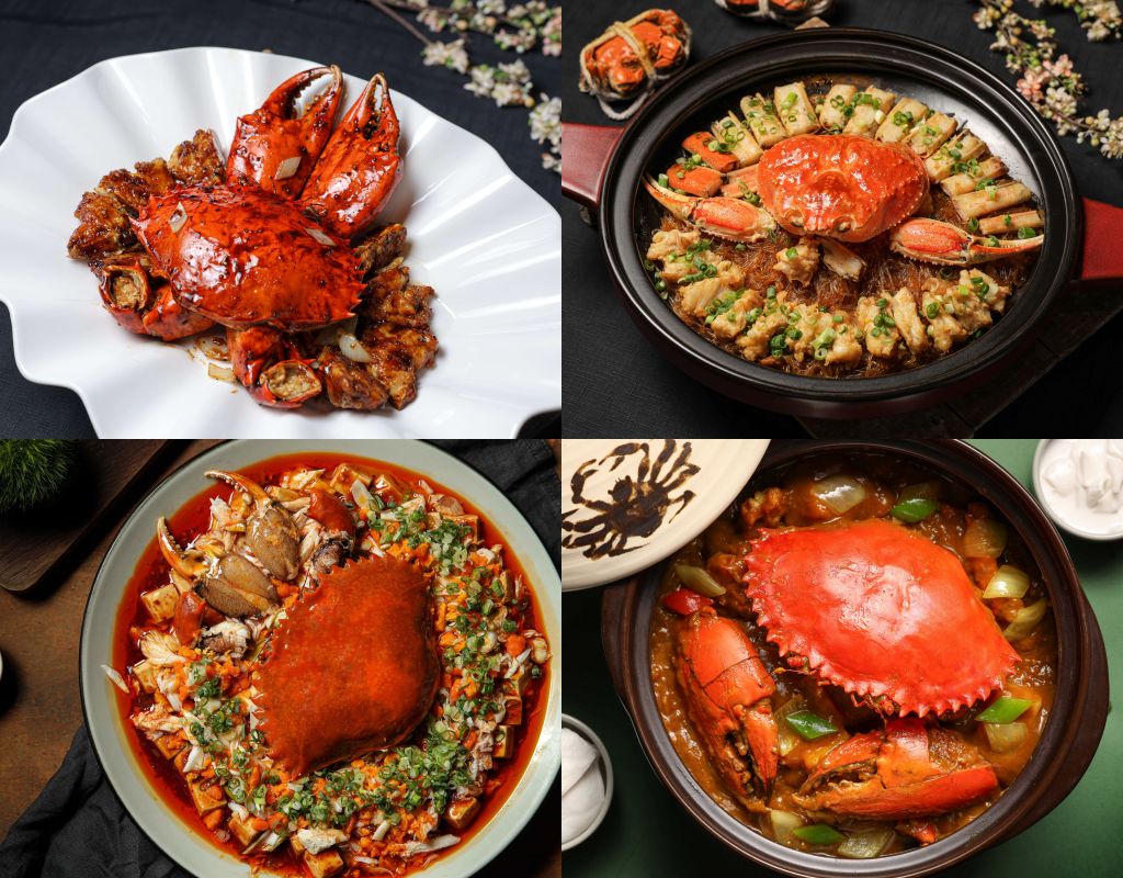 生拆膏蟹燴麻婆豆腐以清蒸方式保留螃蟹天然鮮甜口感,入口能同時感受辛香麻婆豆腐與鮮甜螃蟹,食用時配上一碗白飯,以辛香鮮甜醬汁拌佐盡興飽餐。老香港咖哩蟹選用肉質厚實斯里蘭卡沙公,感受咖哩香、蟹香及米香三重滋味,料理上桌後服務人員會於桌邊淋上獨門椰漿,為整道菜注入充滿懷舊港式靈魂。