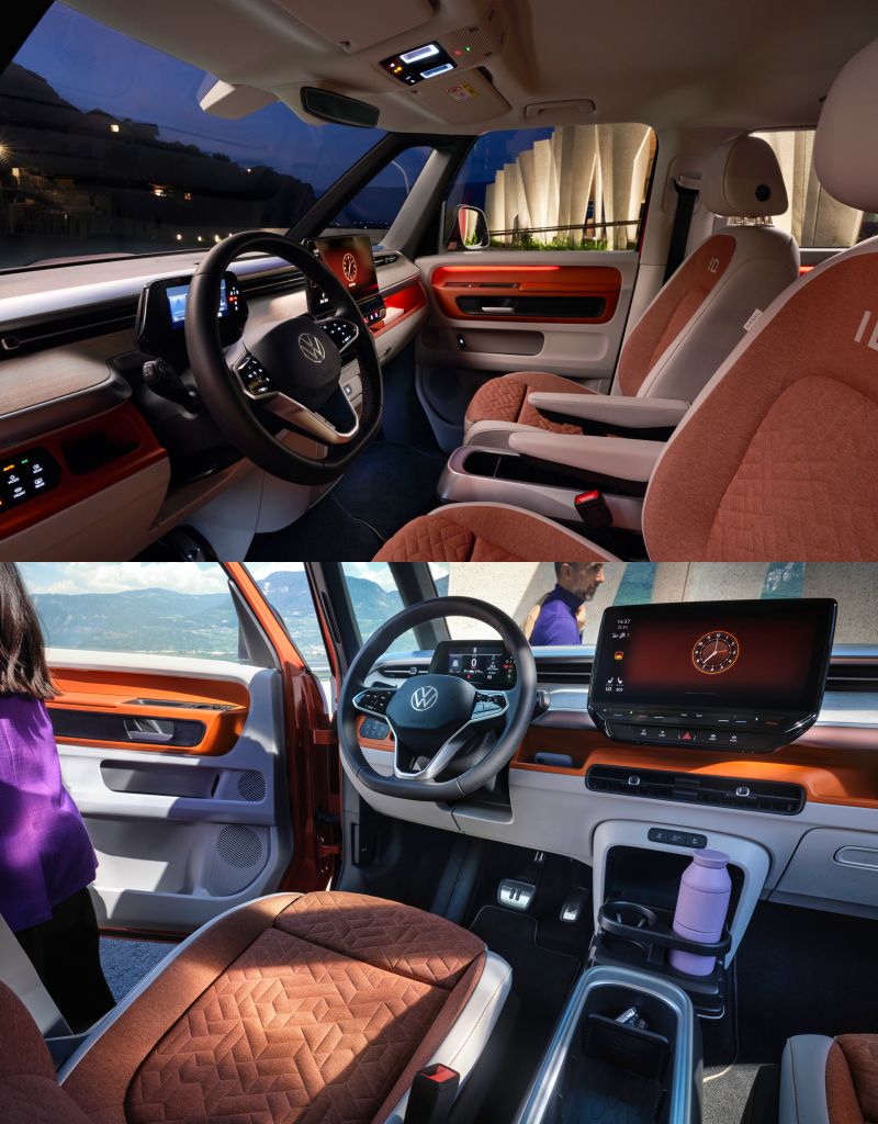 採用低風阻空氣力學優化設計,勾勒出流線吸睛外觀造型曲線,車頭V型宛如微笑圓弧曲線、大型福斯LOGO廠徽、視野開闊雙A柱設計、雙色車身烤漆塗裝、D柱三橫條裝飾與橫跨車身腰線等,完美融合T1車系經典傳承75年經典復古元素及ID.家族前衛科技設計語彙,單色或雙色均保有不同風格與樣貌。