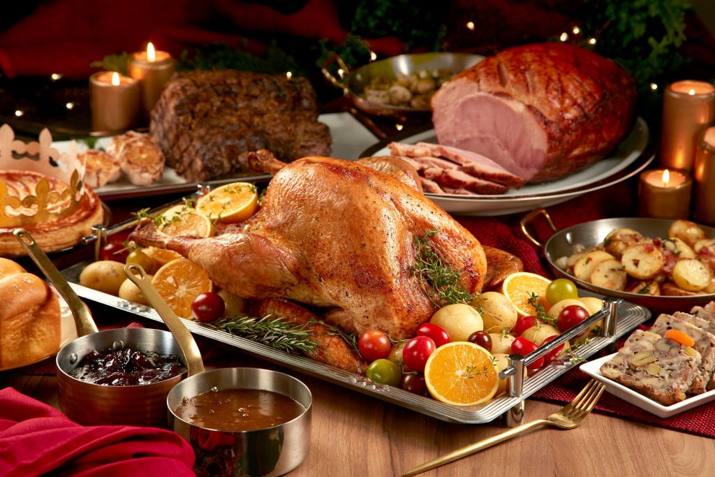 經典人氣”香烤火雞繽紛共享組"選用6公斤肥美火雞爐烘烤,皮薄鮮嫩、肉汁滿盈,搭配吉伯特黑胡椒醬與橙香蜂蜜蔓橘醬,口感細膩富有層次。