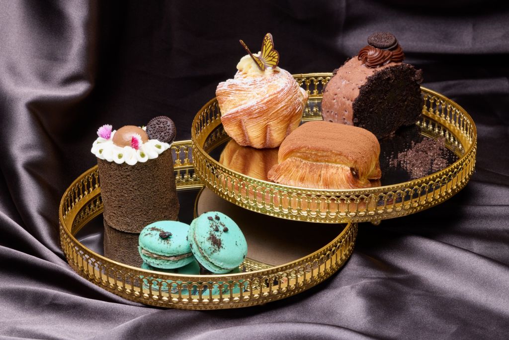 黑金小派對由漢來點心坊主廚李振銘師傅研製12款限定美味,呈獻全新設計融合CADBURY與OREO英美巧克力精品,搭配澳洲PHILADELPHIA菲力奶油乳酪,為可可甜點增加豐富層次感,以奢華黑色饗宴重金犒賞甜點獵人。