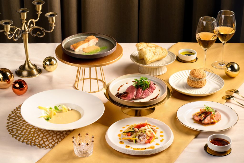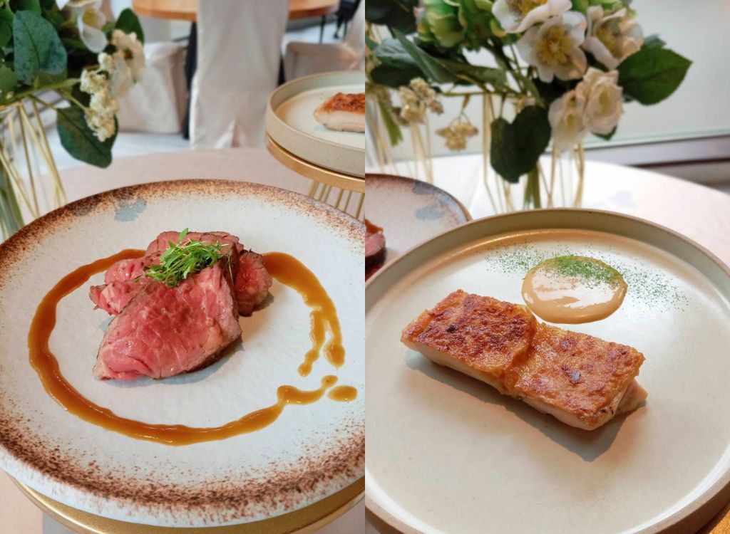 “爐烤美國翼板牛排佐馬告醬汁"外酥內嫩多汁,搭配馬告醬汁;"香煎農場雞腿佐法式豆乳醬"翻轉傳統台式豆乳印象;"酥皮焙茶泡芙"富含濃郁茶香,體現在地風韻。