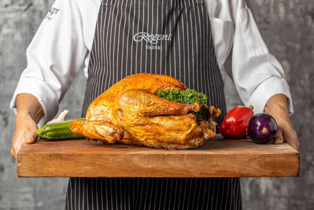 歡度感恩節,台北晶華酒店推出一系列感恩大餐,主廚團隊精心製作全台唯一"皇家爐烤火鴨雞Turducken"、經典"威靈頓牛排"、"爐烤火雞"、"香烤春雞"及冠軍熱銷"爐烤美國頂級肋眼牛排"5款熟食禮籃,佳節必備南瓜派、胡桃派、派對三重奏等經典甜品選項。