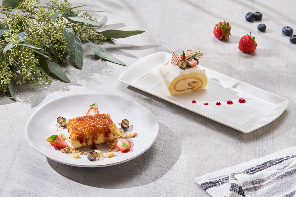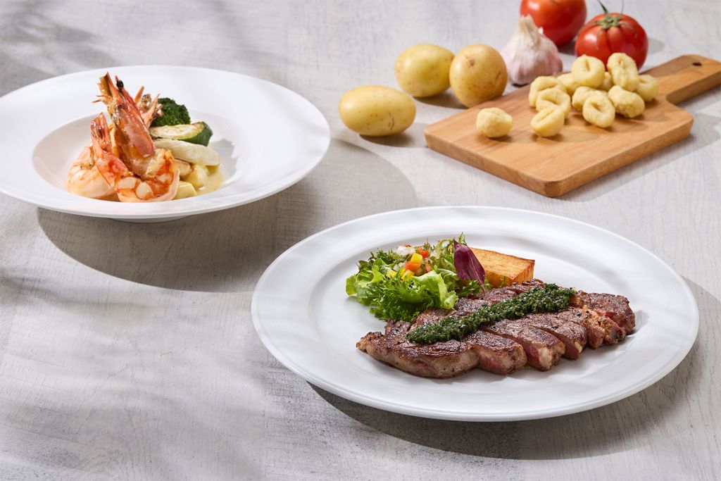 還有經典不敗艾美烤鴨、嫩滑多汁現切爐烤牛排、現煎干貝、現煎戰斧豬排、現煎干貝,剝皮辣椒雞燉湯暖湯等品項,甜點珍珠奶酪、蒙布朗、芋頭生乳捲、檸檬塔⋯同步供應,日式、中式、歐式等多種異國風味料理一應俱全。