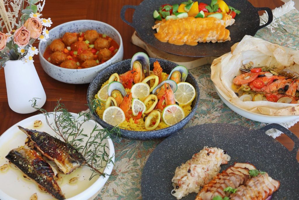 花蓮潔西艾美酒店探索廚房全日餐廳依餐期供應,更新冬季菜單內容,主推"歐陸區"餐檯,賓客可大啖西班牙海鮮燉飯、威靈頓鮭魚、德式脆皮豬肉、低溫炙雞胸等特色料理。