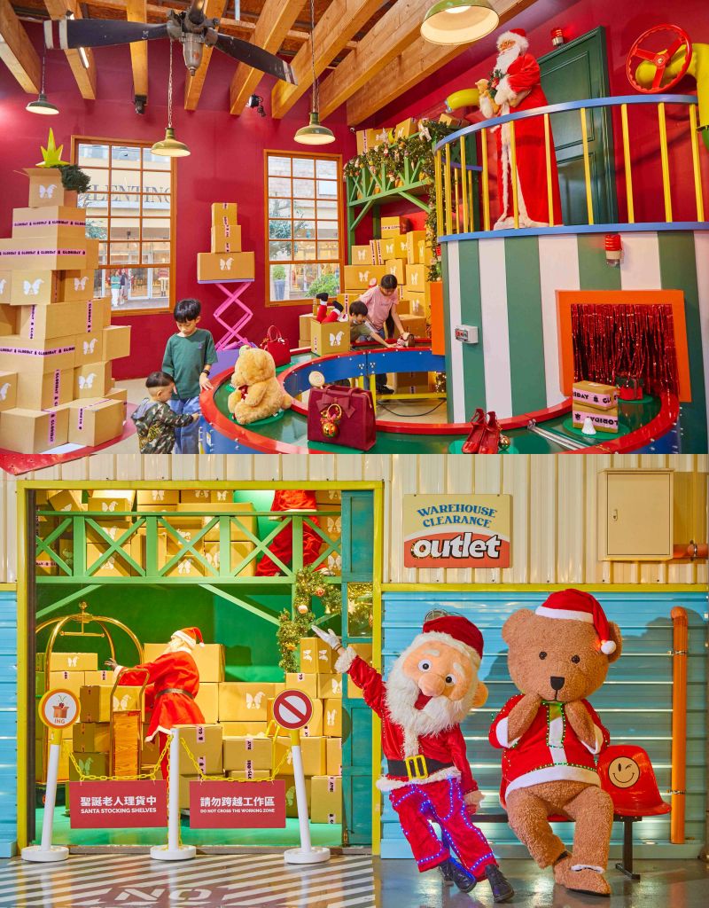 3期Shopaholic Warehouse:最具創意的聖誕Shopping店到店服務,桃色自助取貨櫃檯、巨型槲寄生花圈、大型搖桿爪夾、包裹秤重設備等暢遊其中、趣味取件。穿過隔間還能一窺聖誕老公公在後場忙碌理貨的有趣景象。每個角落都能腦洞大開、發揮創意、拍出超有故事性的聖誕趣照。
