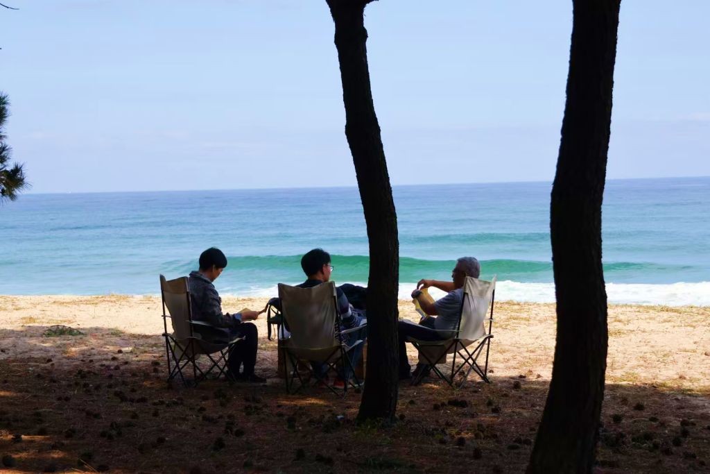海波朗39號步道在環湖之後連接到海邊,5公里的海岸步道走在松林裡,沿着海邊是一整排的飯店,各式餐廳酒吧,及靠近碼頭的咖啡店一條街。作為韓國第一個舉辦咖啡節的江陵海岸,除了看海、喝咖啡之外,還有許多當地文創小店,每逢假日更有沙灘音樂節,活動非常多元。