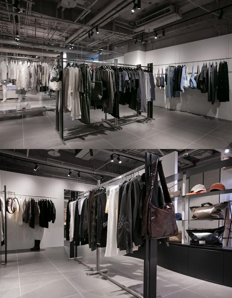 MATIN KIM台灣首店延續韓國原有冷淡風格設計,店鋪內部以黑、白、灰、金屬銀等經典色調組合而成,營造簡約而充滿質感空間氛圍,散發獨特韓式韻味風格,帶來原汁原味的韓國時尚購物體驗。