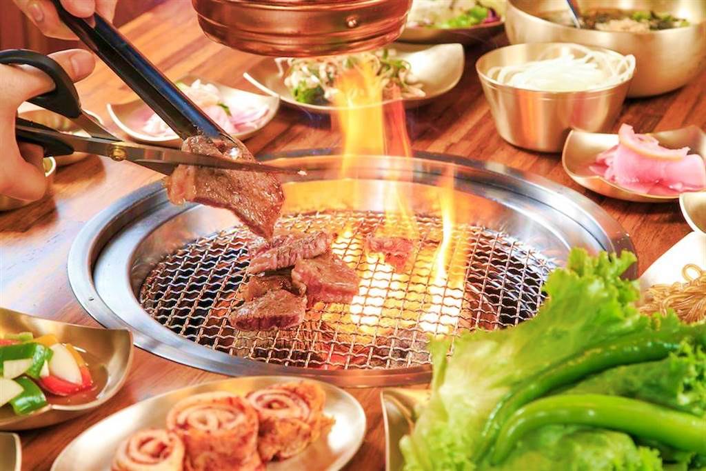 食器選用新羅時期王室御用黃銅餐具,溫潤金屬光澤高貴精緻,材質本身即有殺菌特性,盛裝生食更安全衛生。特殊設計烤網,搭配不同肉品使用,能呈現食物最佳風味。還有韓式涼拌冬粉、芥末小黃瓜、蘋果南瓜泥、傳統手工醃製泡菜及冷湯等,高達8~10種現做韓式小菜可無限續點。