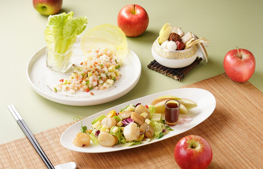 醉月樓主廚許忠賢以中華料理食補精神,將青森蘋果昇華為溫補回甘美味冬季料理。“楠西梅汁蘋果醋綠帶子"鮮甜干貝搭配開胃果醋;"蘋果百合蜜棗燉雞湯"細膩回甘、溫火燉煮;"松子蘆筍蘋果炒蝦鬆"外酥裡嫩、微甜帶脆;"弘前蘋果相思紅豆包"紅豆、蘋果與蜂蜜交織,各別於1樓外賣店品香坊與38樓最美觀景中餐廳醉月樓美味鉅獻,一品最道地的青森蘋果料理。