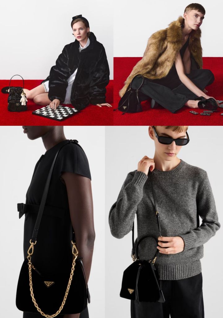 PRADA推出一系列絲絨單品彰顯雋永之美,以經典黑色及及雅致霧粉色,開啟冬日優雅多面向探索。完美展現復古又經典的現代詮釋,注入別具一格節慶氛圍,輕鬆打造獨具魅力的冬季穿搭。