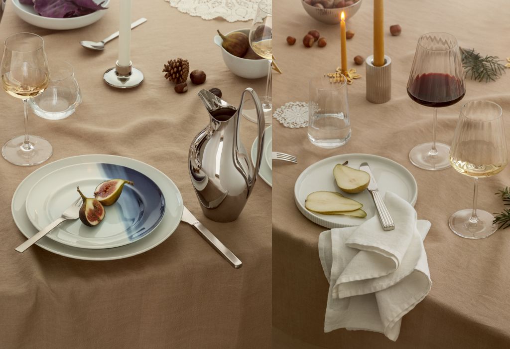 HENNING KOPPEL餐器精品極具藝術性與精緻感,華麗升級聖誕餐桌,啟動餘韻無窮美好食光。全新藍彩白瓷餐盤靈感汲取自丹麥現代主義大師漢寧古柏(Henning Koppel)繪製草圖時運用的水彩技法,考究色彩配置體現簡約設計美學,實現究極擺盤藝術,豐富味蕾與視覺的感知共鳴。出自大師經典原創不銹鋼水壺,以宛若天鵝昂首振翅優美外形,展現豐厚創作內韻。