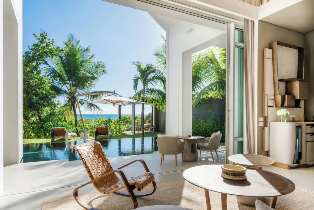 JEAN-MICHEL GATHY自然主義設計概念在CHEVAL BLANC SEYCHELLES充分展現,建築與周圍環境和諧互動。別墅設計借鑒塞席爾傳統建築元素,擁有高聳斜面屋頂與開闊窗戶,引入自然通風與印度洋全景視野,模糊室內外界限,讓賓客體驗熱帶環境與地道塞席爾建築元素的無縫連接。