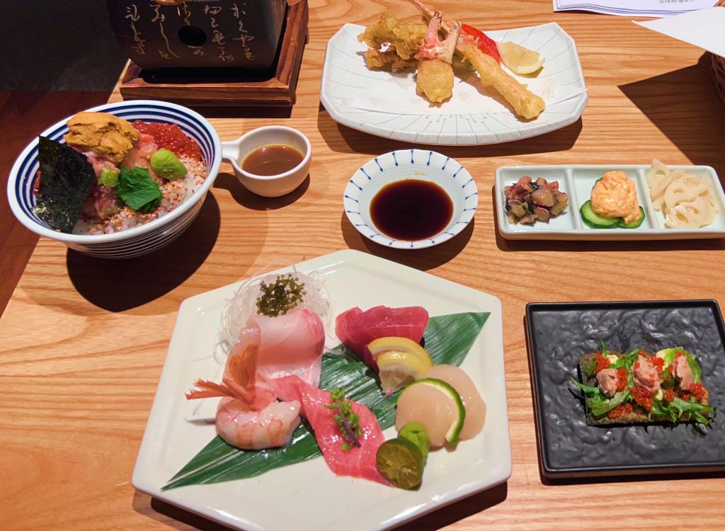 海膽迷你海鮮珠寶盒完美演繹迷你海鮮盒加海膽,細細品嚐、鮮味十足,滿足口腹之慾。松葉蟹野菜天婦羅以新鮮松葉蟹肉搭配各種時令野蔬,裹上金黃天婦羅麵衣高溫油炸至金黃酥脆,保留食材鮮甜與營養。