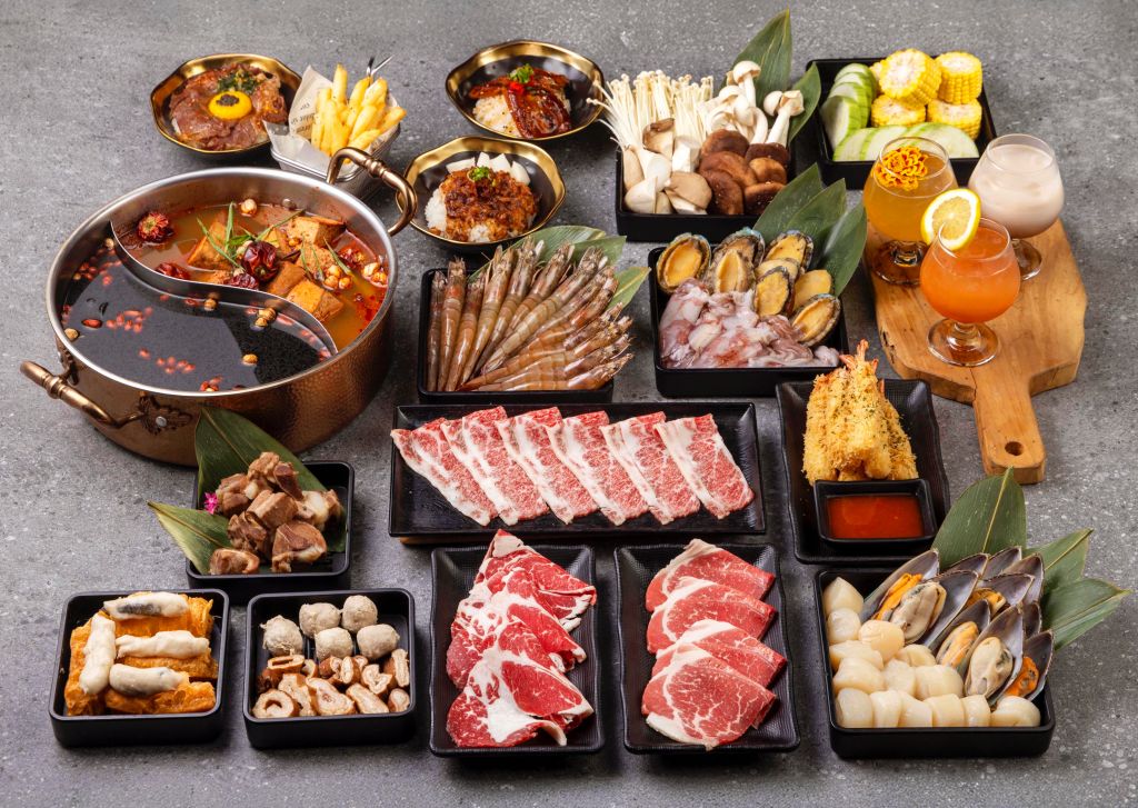 所有食材都經過精心挑選,選用台灣在地高品質食材,從源頭確保每道菜品健康美味。美國頂級板腱牛、台灣嚴選豬五花、台灣溫體去骨雞腿及日本A5和牛、生態根島蝦等食材,還有浮誇自助吧無限供應,火鍋配料高達40餘種,想吃什麼一次滿足。