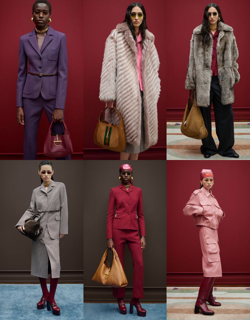 配件在本系列格外重要。永恆經典JACKIE 1961系列包款以麂皮搭配紅綠織帶條紋,嘗試在典藏材質與標誌組合創造反差感。標誌性圓弧廓形BLONDIE系列包款推出全新羊毛款,優雅舒適。