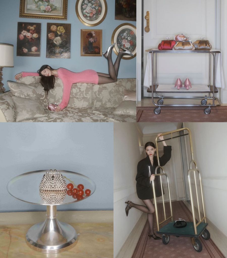 PASTICCINO點心包優雅置於銀盤上,盛裝亮相假日時節。採用紅寶石色或黑色絲綢材質,或點綴水晶嵌飾珠扣,或飾以熠熠生輝垂墜流蘇,或採用富冬日氣息溫潤白色調,或以大顆水晶精心妝點。另有輝芒閃爍銀色金屬配飾珠寶與發帶,更添耀目光澤。