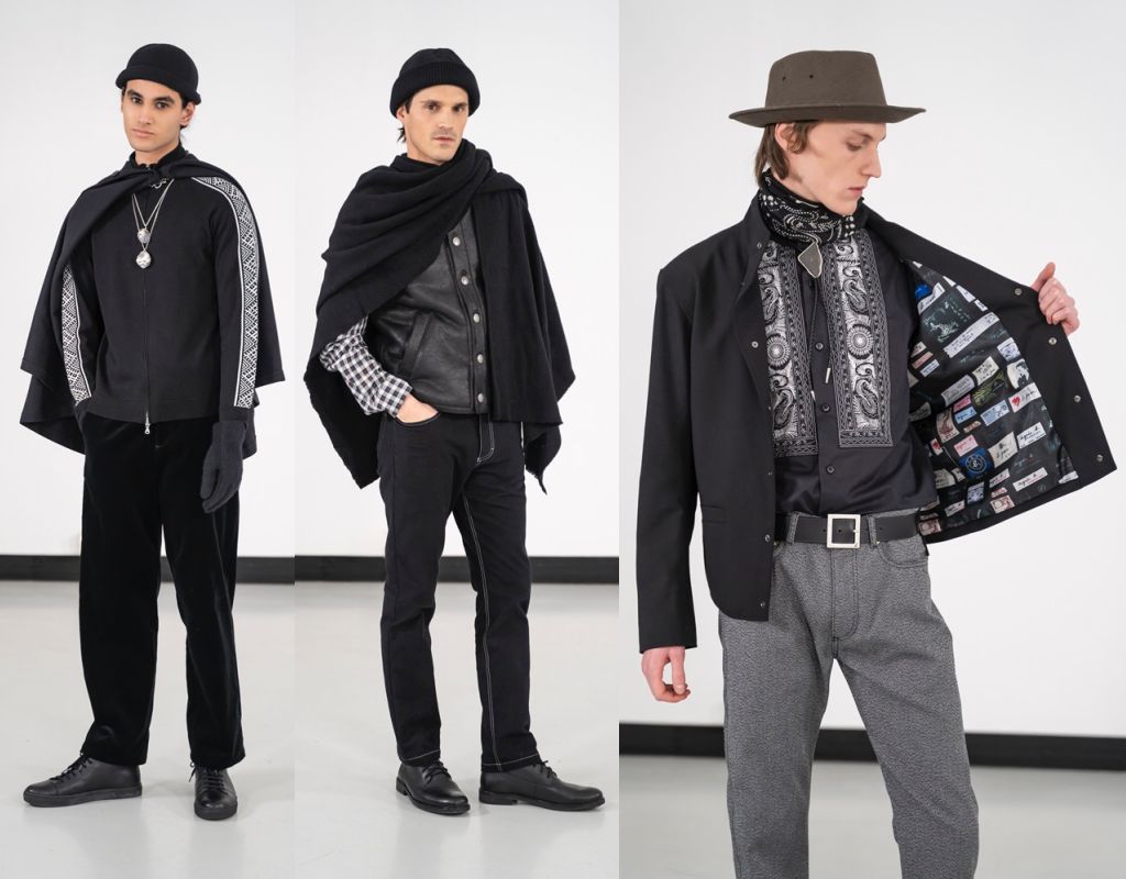 男士派對造型以搖滾輪廓融合西部風格,汲取1988年美國電影《Dangerous Liaisons(危險關係)》為靈感,推出圓領針織毛衣、高腰束口褲、皮革外套等單品。緹花細節與獨特印花相映成趣,突顯瀟灑率性氣質。黑、藍、灰為主色調加入一抹紅、黃色點綴,運用刺繡、皮革裝飾,為整體裝束增添細節層次。