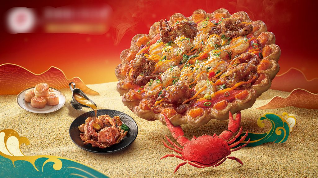 全新金皇軟殼蟹干貝比薩嚴選酥炸軟殼蟹為主菜,先炸後烤獨特工法搭上口感鮮嫩多汁鮮甜干貝與Q彈刻花魷魚,感受滿滿鮮味在口中蔓延。鮮香蟹黃醬汁與濃郁甘醇照燒醬甜鹹滋味提升味覺層次,突破比薩美味極限。加價還能升級期間限定奢華三起司餅皮或帕瑪森起司龍捲風餅皮,感受多種起司交融的香濃美好,為新年增添金燦燦福氣。