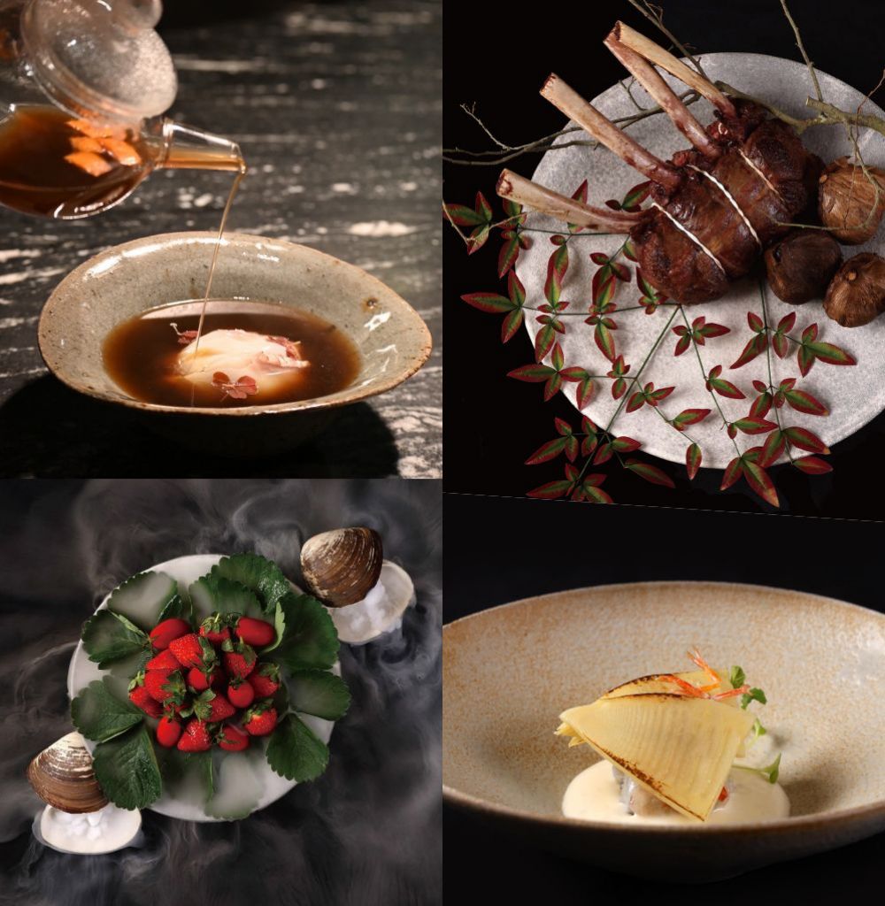 飛松主廚以獨樹一格的繽紛與生命力展開本季餐點,使用鹿肉、北寄貝、槍烏賊、車海老、冬筍、大湖草莓、釋迦等琳瑯滿目當季旬味,融合所有一元復始時刻,翻玩淋漓盡致最該品嚐的滋味。