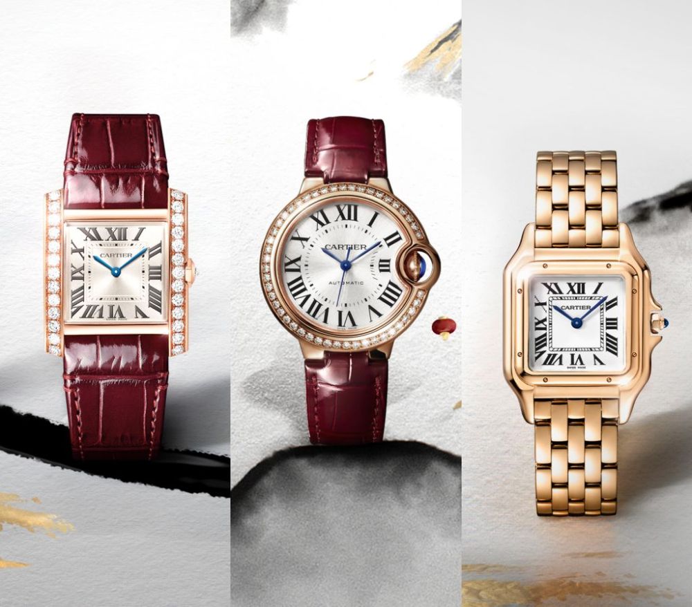 經典腕錶系列一抹朱紅,繪就千燈綏爛,BALLON BLEU DE CARTIER腕錶傳遞圓滿祝福。新春畫卷鋪展,輕隨豹影,邂逅TANK FRANÇAISE腕錶、PANTHÈRE DE CARTIER腕錶於分秒間盡釋優雅魅力。金輝拂照萬物,BAIGNOIRE腕錶願新年時刻璀璨。