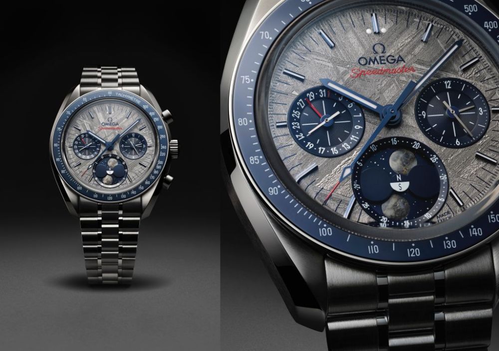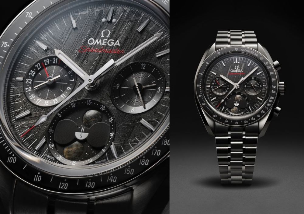 OMEGA歐米茄全新推出超霸系列月相隕石腕錶,錶徑43毫米腕錶系列提供2種不銹鋼款式選擇。每枚腕錶皆運用2種不同類型隕石材質,搭載全新歐米茄機芯,首次實現同時顯示北半球與南半球月相功能,致敬超霸系列登月傳奇,陪伴探索無限可能。