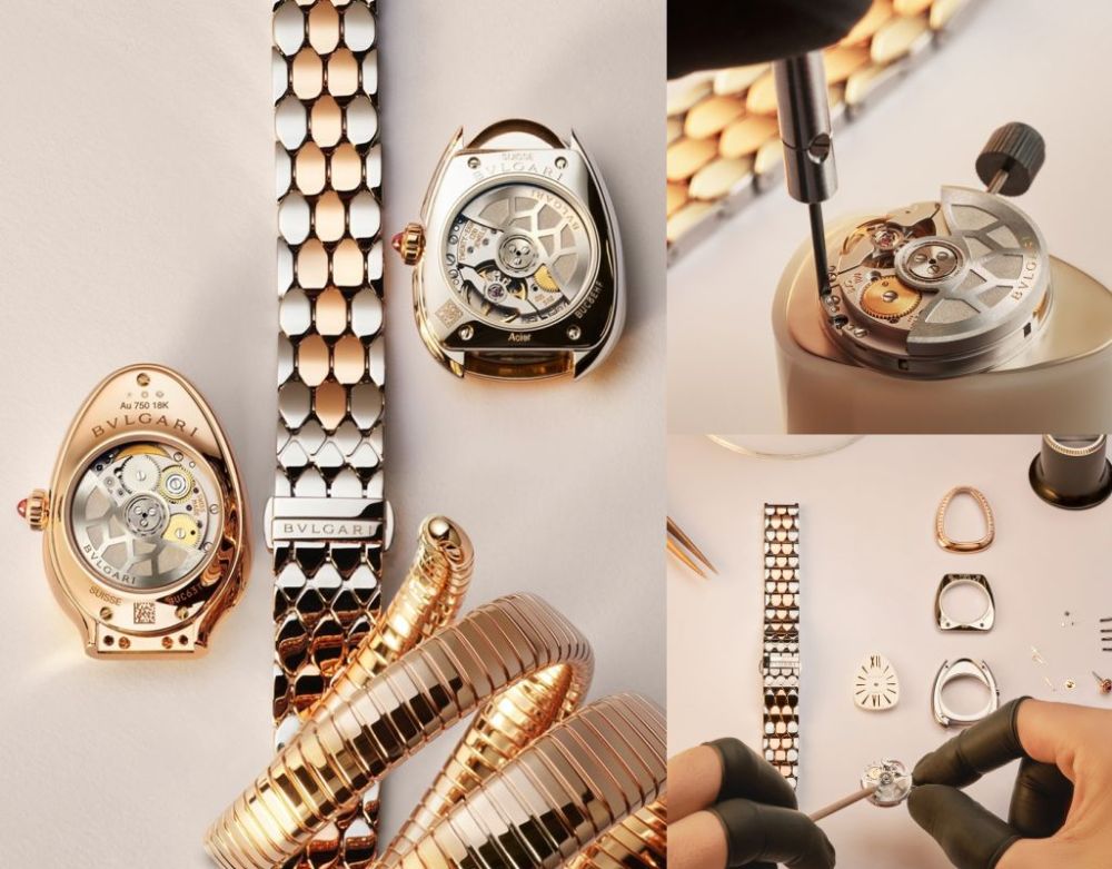 自動盤擺輪裝飾蛇鱗為設計靈感,透明錶殼飾有7枚經典蛇鱗,宛若靈蛇蛇鱗般光彩閃動,象徵腕錶能隨佩戴者舉手投足持續累積動能,實現永不止息的更新循環。彰顯獨具一格優雅美學,將製錶機械提升為藝術層次。