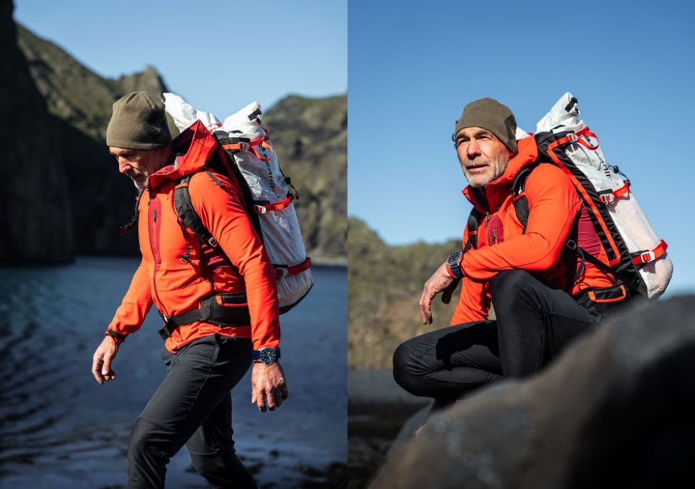 新作專為挑戰極限活動而打造,直徑44毫米磨砂精鋼錶殼堅實耐用,搭配MIKE HORN系列腕錶代表性色彩藍色直紋磨砂錶盤,精鋼單向旋轉錶圈鑲以拋光藍色陶瓷轉盤,可抵禦撞擊或避免錶圈因接觸其他物件而受損。藍色錶冠塗覆橡膠材質,封閉式錶背鐫有Mike Horn簽名。