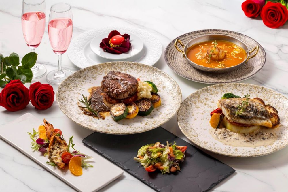 晚間於板石Lounge&Bar品嘗主廚團隊精心準備的精緻情人節套餐,提供前菜焗烤澎湖斑節蝦、北歐燻鮭魚凱撒沙拉、法式南瓜濃湯佐生食級干貝,及炙烤5盎司肋眼牛排與義式香草奶油煎金目鱸雙主菜,佐餐搭配西班牙艾莎貝粉紅氣泡酒,再以草莓覆盆子慕斯酸甜滋味為套餐畫上完美句點,為2人創造美好回憶。