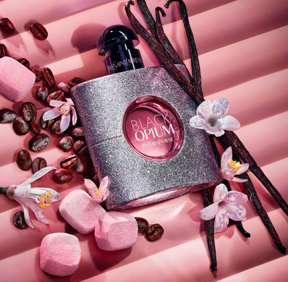 YSL BEAUTY全新”黑鴉片粉耀淡香精”將純欲系棉花糖麝香調糅合至經典咖啡花香,珍貴瓶身璨亮銀輝如同光芒四射的亮片,在黑暗中閃閃發光,甜欲狂想,閃耀性感璨光,甜美夜昧誘惑。