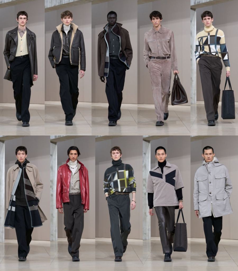 HERMÈS愛馬仕2025年秋冬男裝系列時裝秀在巴黎耶拿宮舉行。居於時間之中,如同進入一座房子,穿上衣裳時便感到被溫柔迎接。