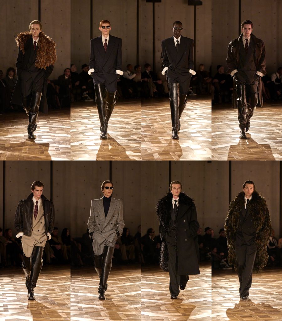 法國高奢時尚SAINT LAURENT發表2025冬季男士系列BY創意總監ANTHONY VACCARELLO。陰鬱與明亮、柔軟與堅硬、寬大與纖細——對立的主調延伸至秀場設計。