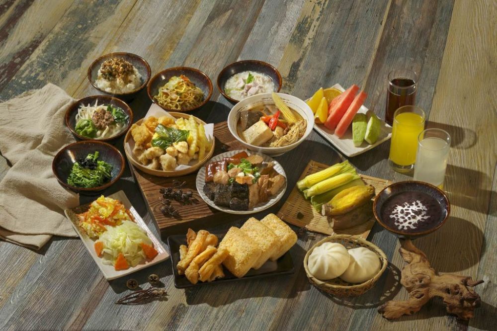 翌日自助式早餐包含10多道囊括台灣南北特色中式早餐,經典魯肉飯鹹香魯肉醬搭配魚鬆,鹹甜交融、香氣四溢。招牌擔仔麵Q彈麵條、濃郁湯頭、脆口芽菜與鵪鶉蛋吸引目光。